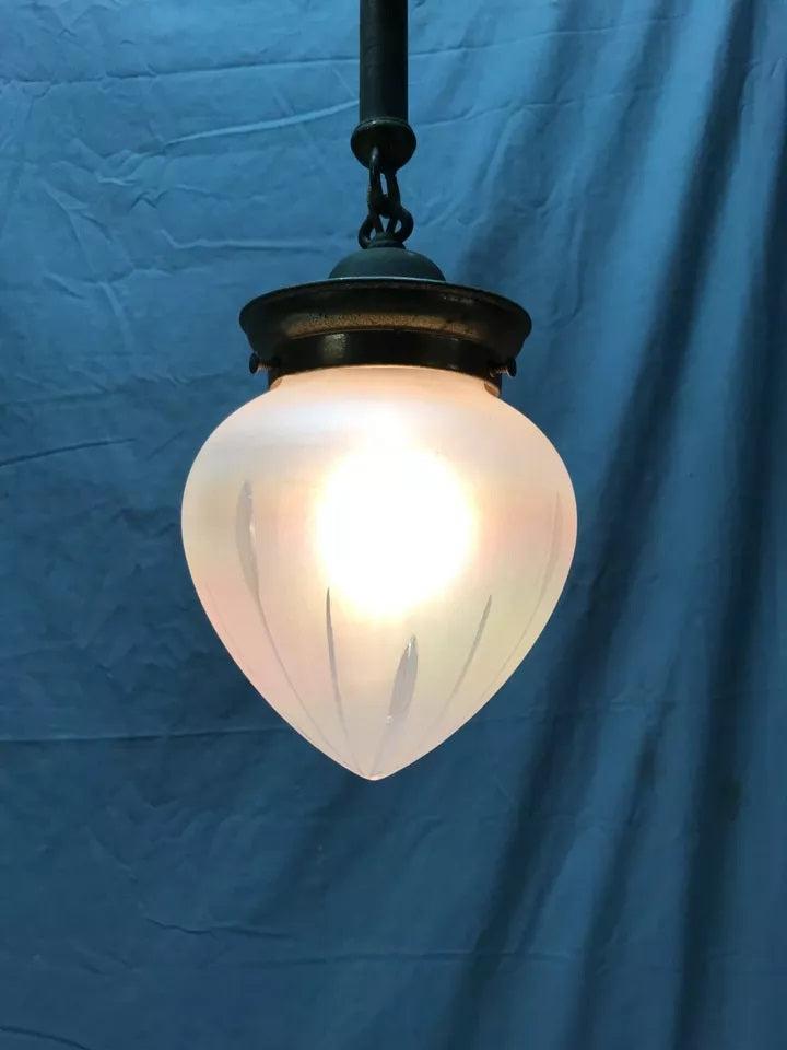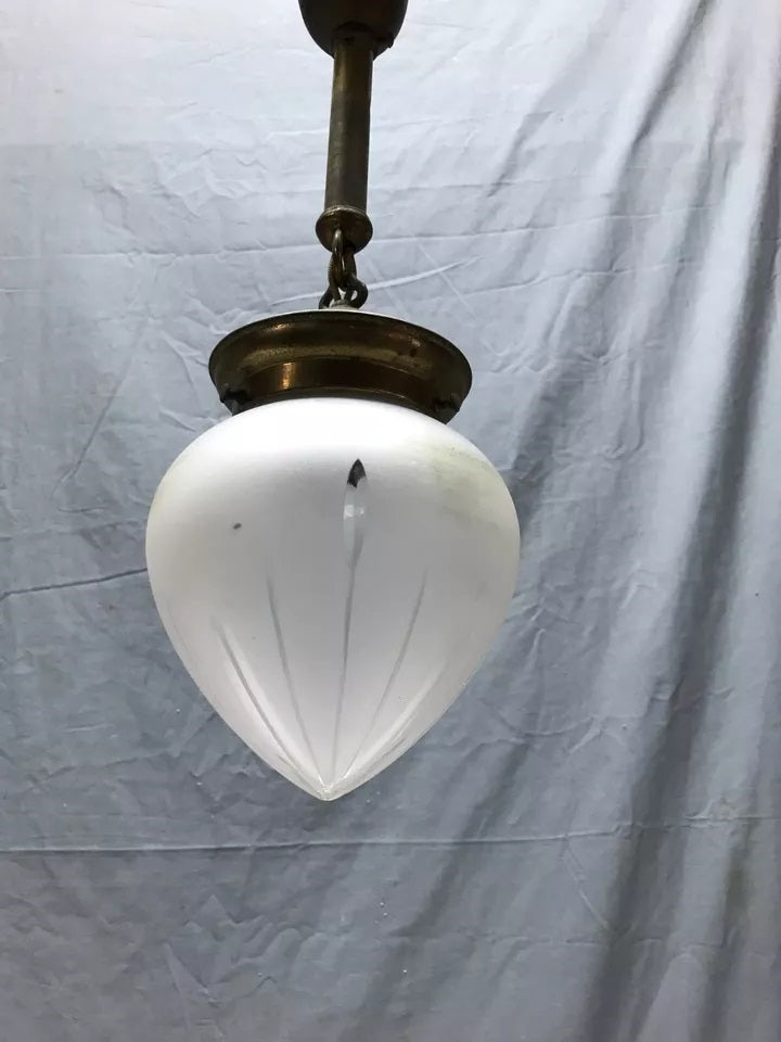 Antique Brass Hanging Onion Textured Glass Ceiling Light Fixture VTG 1726-23B