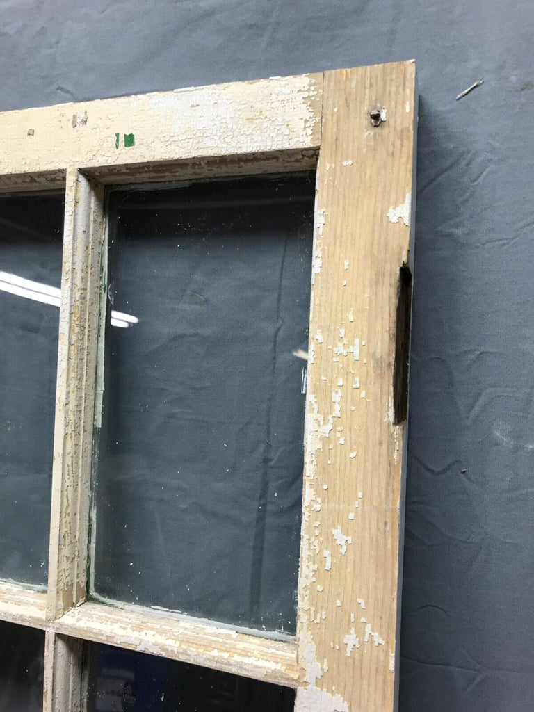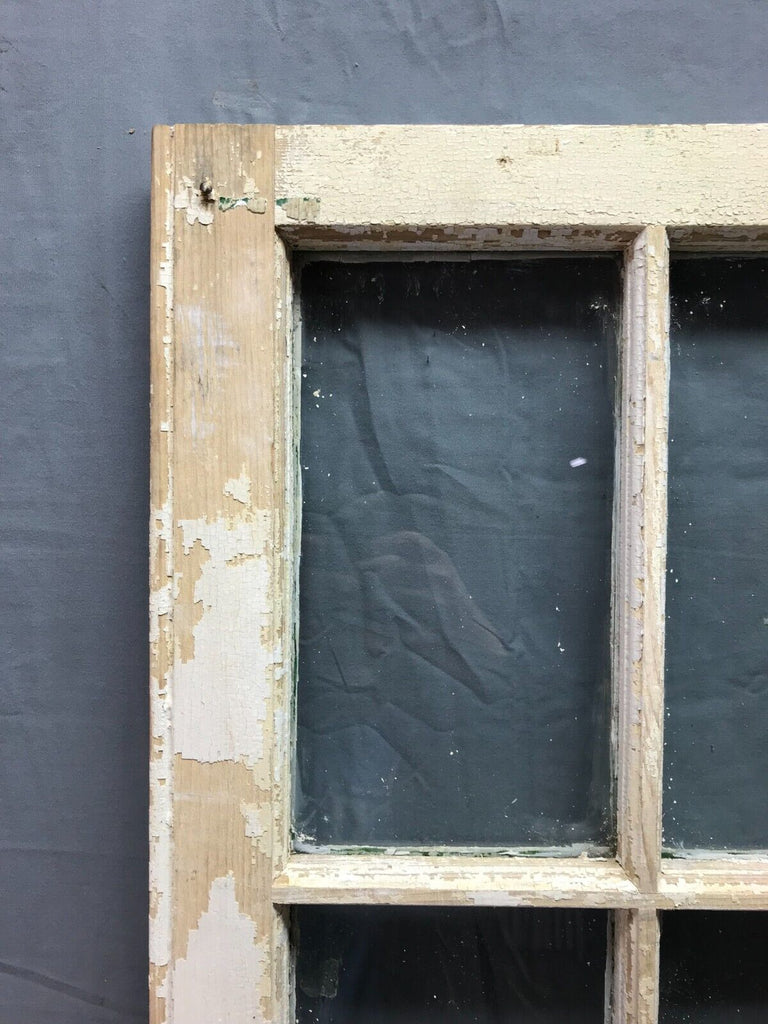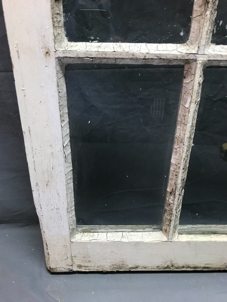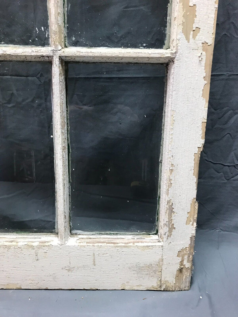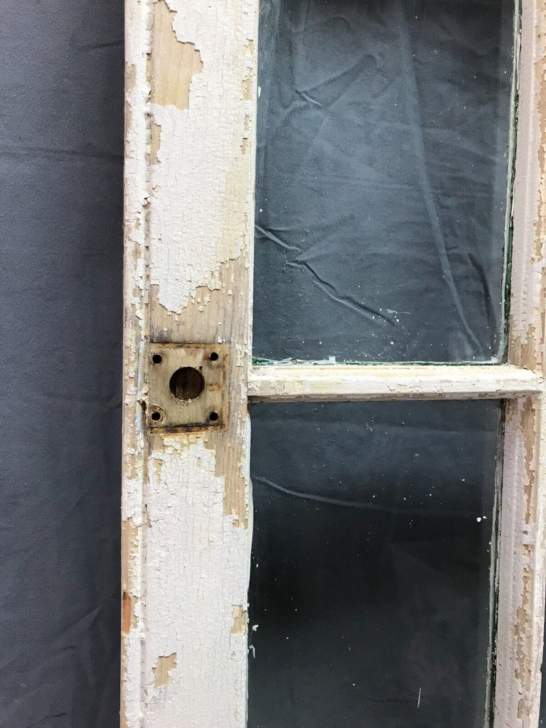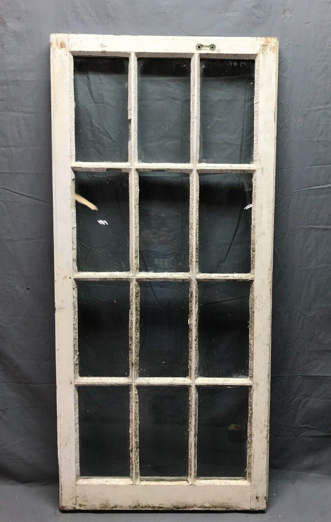 Single antique 12 lite casement window. The window is in a shabby dirty chipped white finish on both sides with a green underneath the backside. The window is a right swing. The original wavy glass is complete. The glass does have some paint along the edges.  The glazing is crumbling loose and will need be re glazed.   The window has no hardware included.  The casement can be used on a shed.  Overall, the window is in solid salvaged condition. Please look over the pictures and ask questions when needed. Thanks for looking.