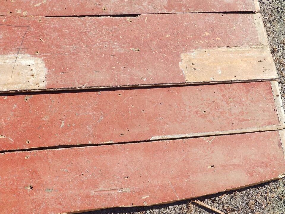 140 sq ft Genuine antique pine wide plank tongue & groove flooring. It was removed from a old house in upstate NY. These boards have chippy old red paint on them. There will be splits, cracks, small missing chunks. The tongue and groove may be splintered and or broke off in spots. typical wear from use and removal. Very solid boards with great grain and loads of character. Please look over the pictures and ask questions when needed. Thanks for looking