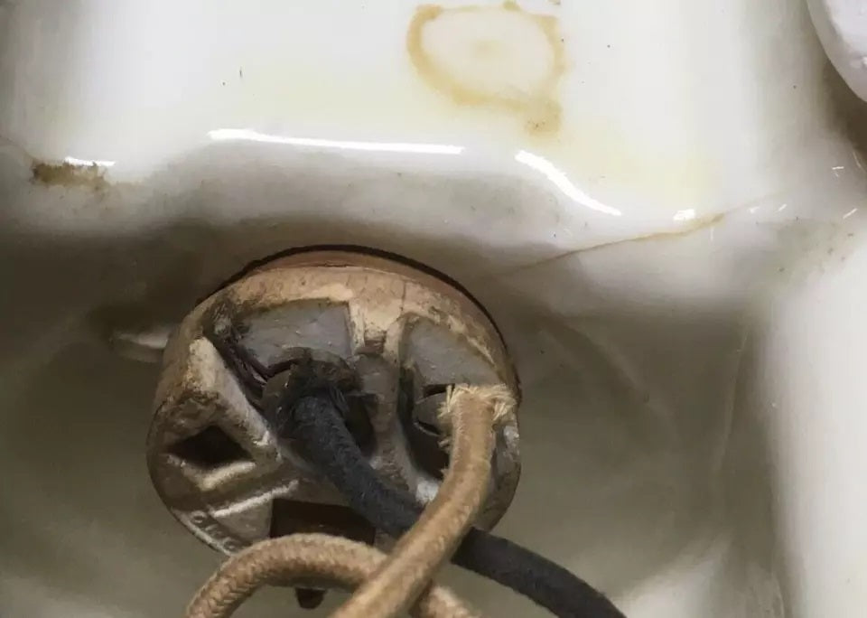 VTG Art Deco Porcelain Ceiling Light Double Amber Glass Slip Shades Old 62-25B