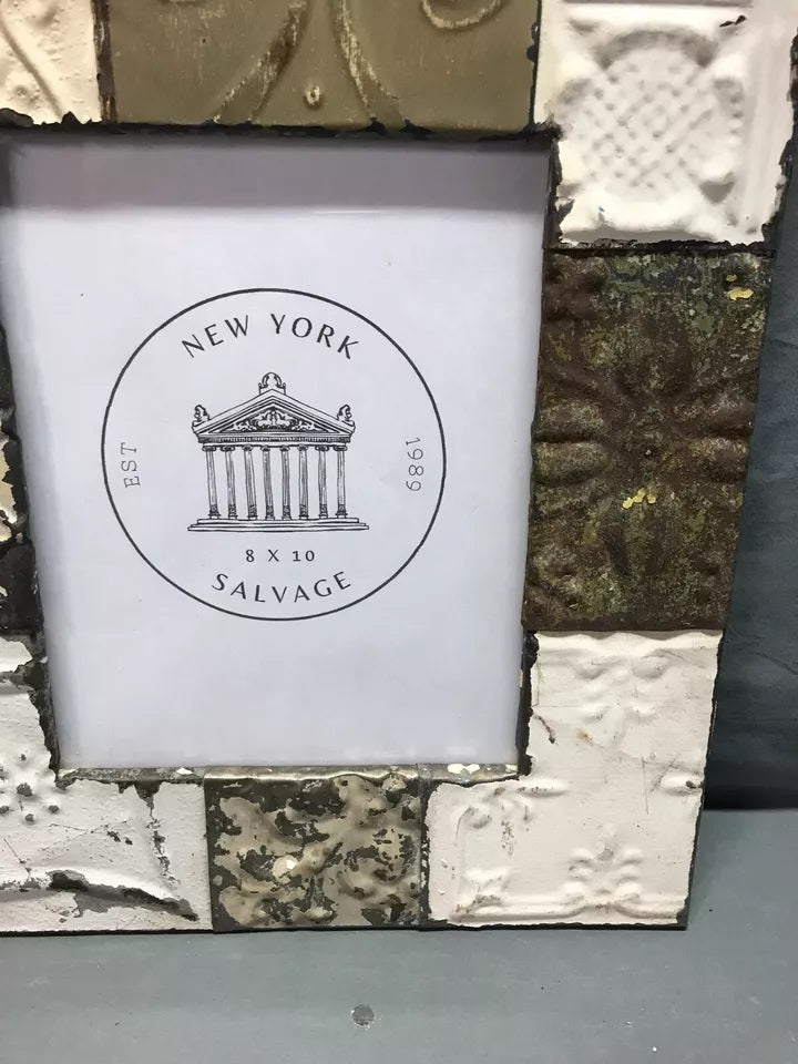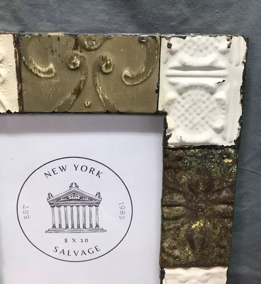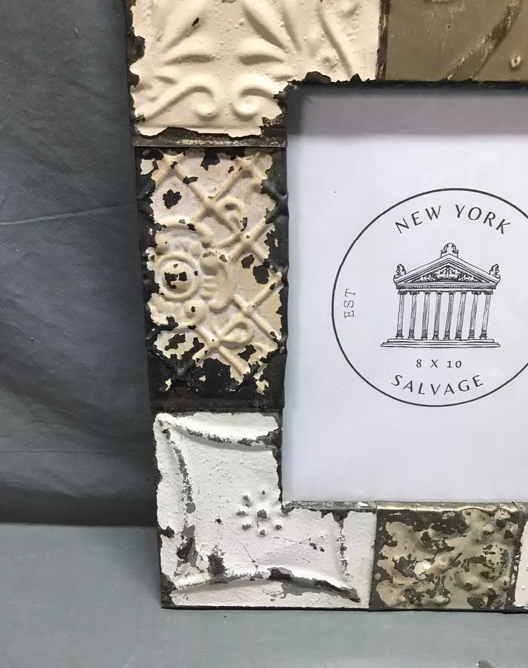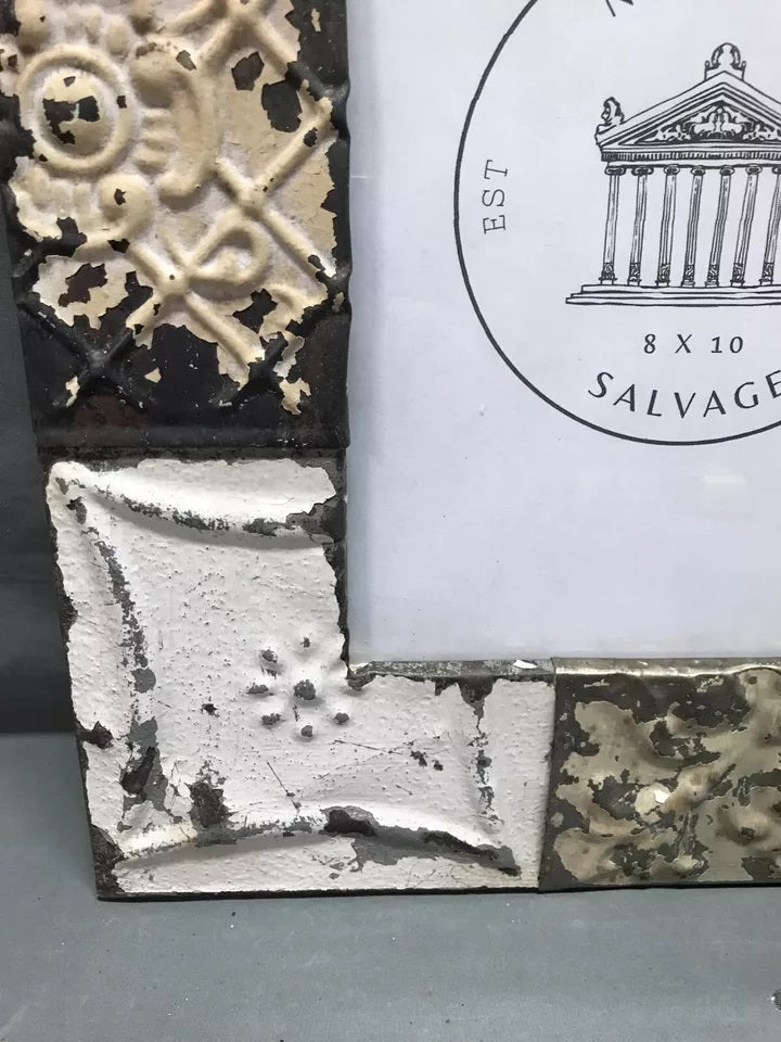 Salvaged Antique 8x10 Tin Ceiling 3" Patchwork Metal Picture Frame Photo Old 50-25B