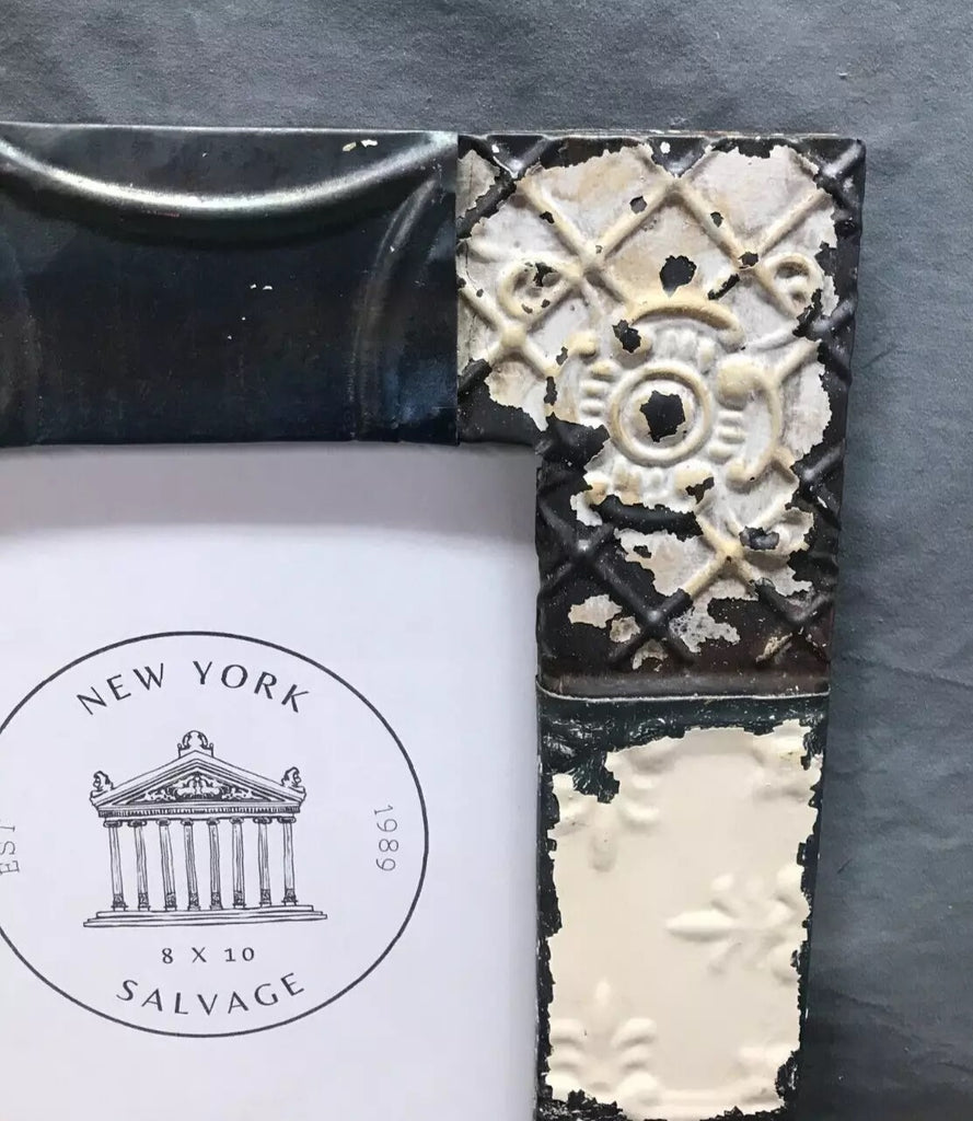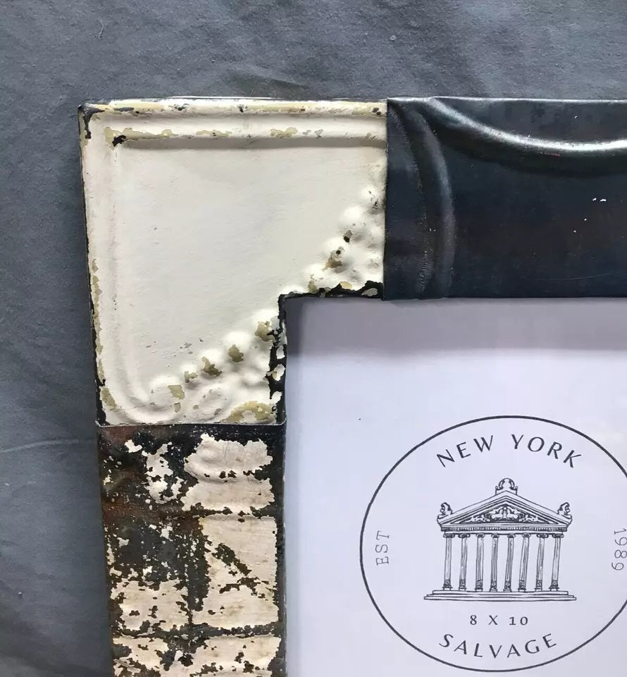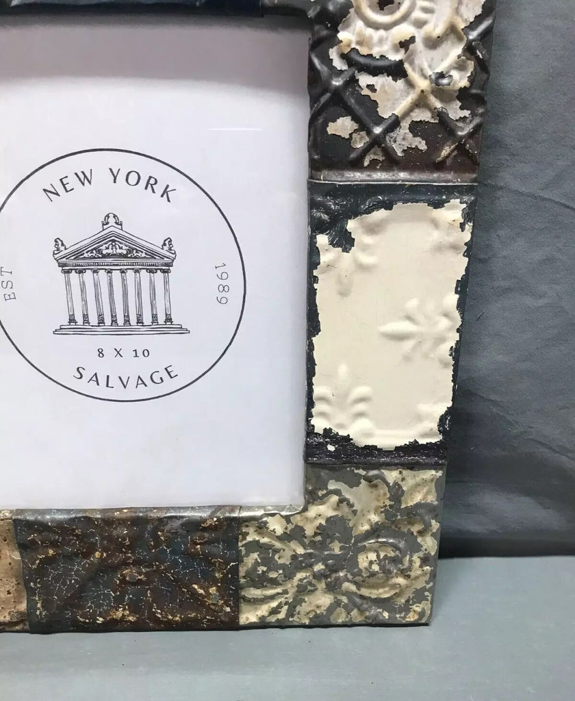 Salvaged Antique Tin Ceiling 8x10 Patchwork Metal Picture Frame Photo Anniversary 48-25B