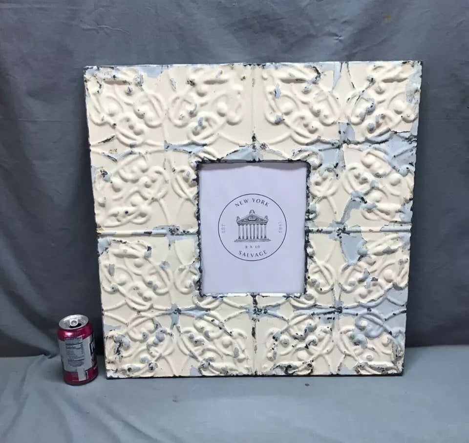 Antique VTG Shabby Tin Ceiling Metal 8X10 Picture Frame 23 SQ. Chic Old 38-25B