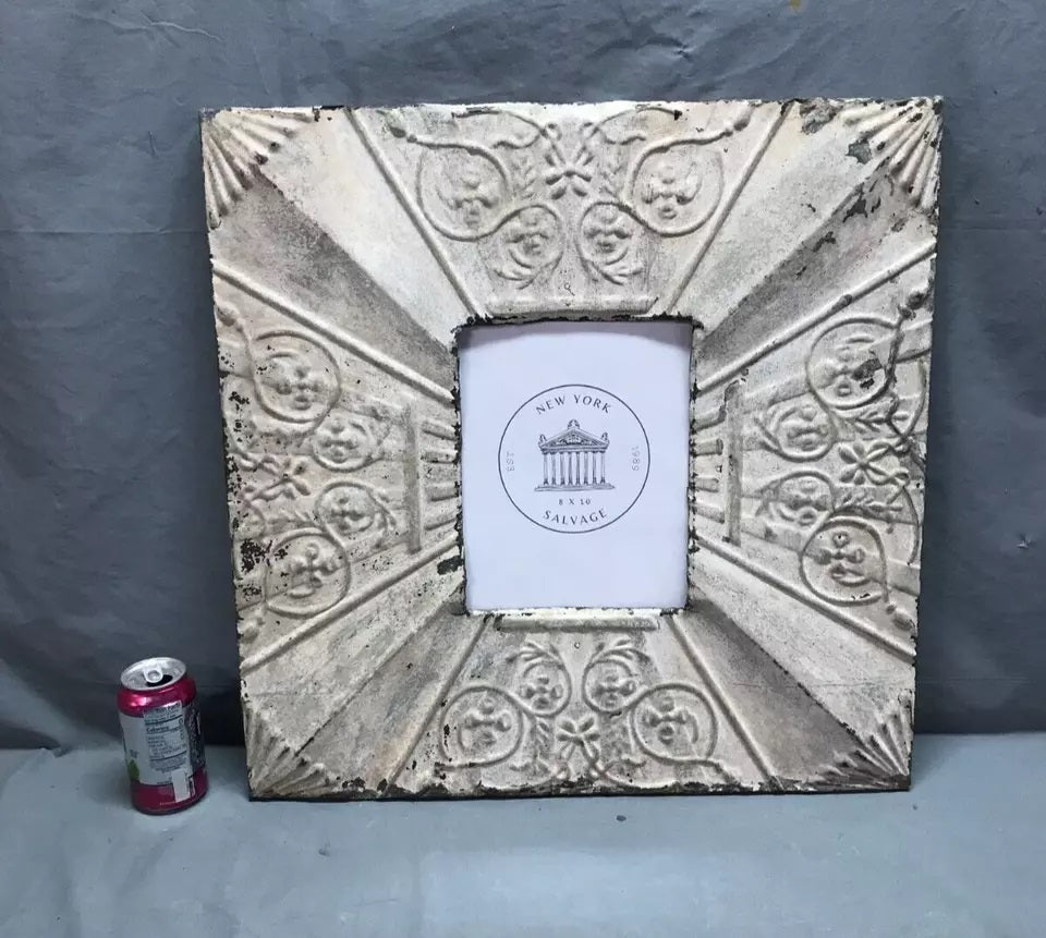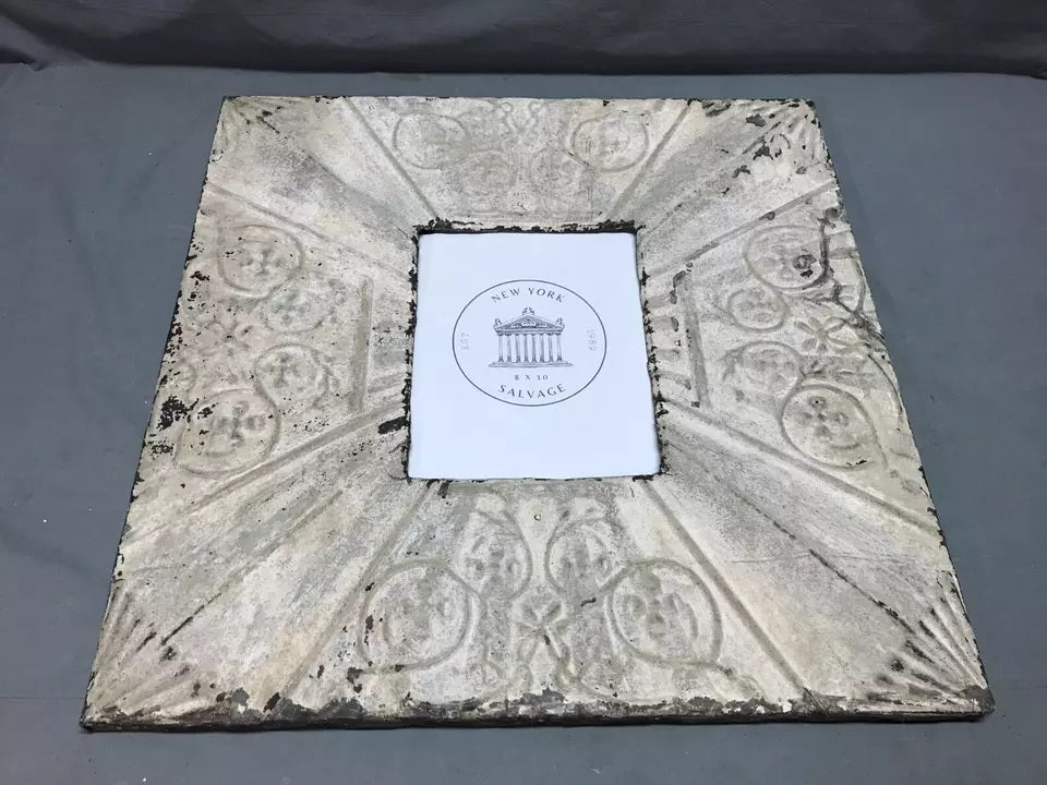 Antique VTG Shabby Tin Ceiling Metal 8X10 Picture Frame 23 SQ. Chic Old 40-25B