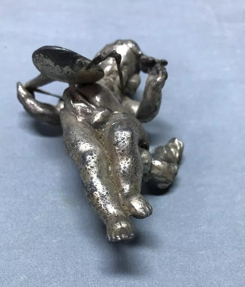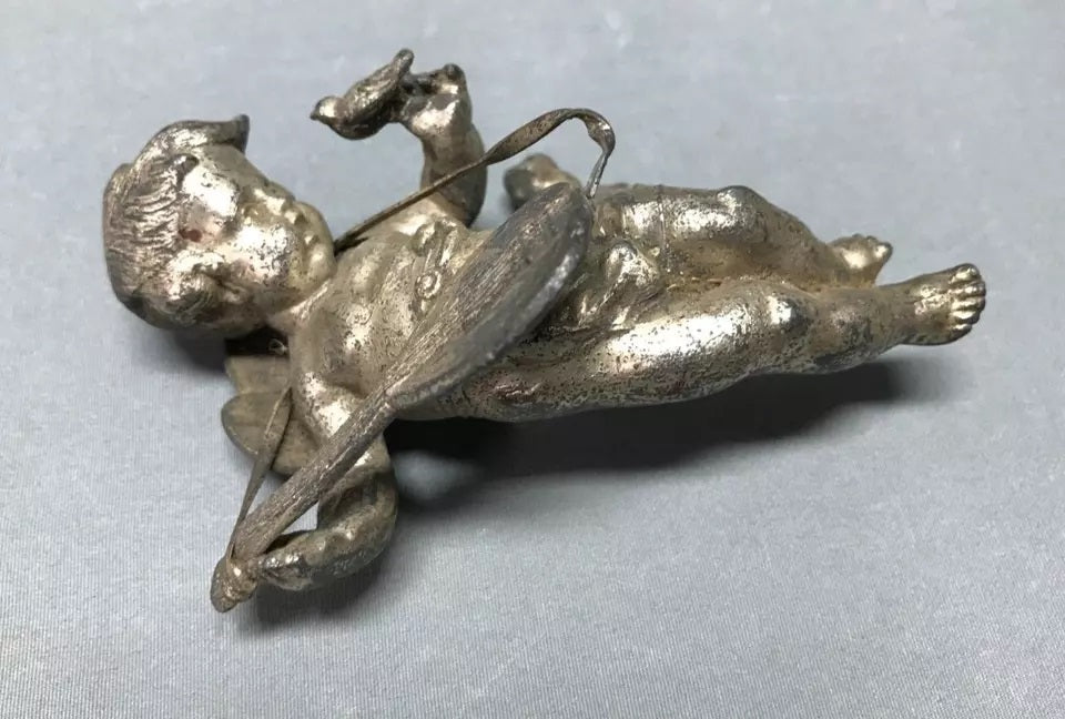 Vintage Nickel Cast Metal 5" Angel Love Cupid Old 1733-24B